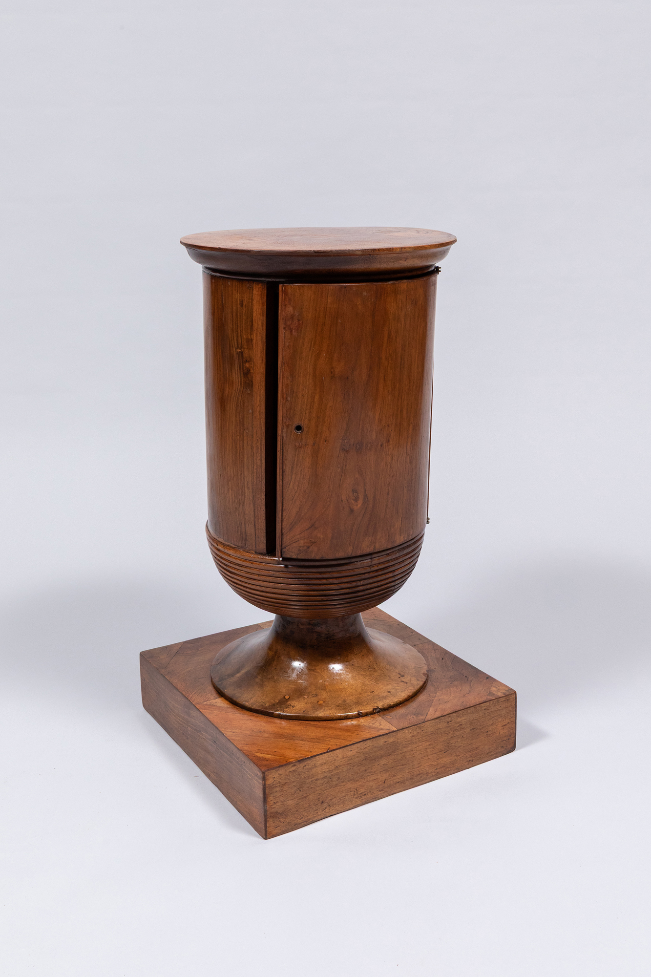 Höhe 106 cm; Durchmesser 64,5 cm. | Nr. 934 - Seltenes, frei stellbares, podestförmiges Schränkchen mit verdecktem Kopfschub.