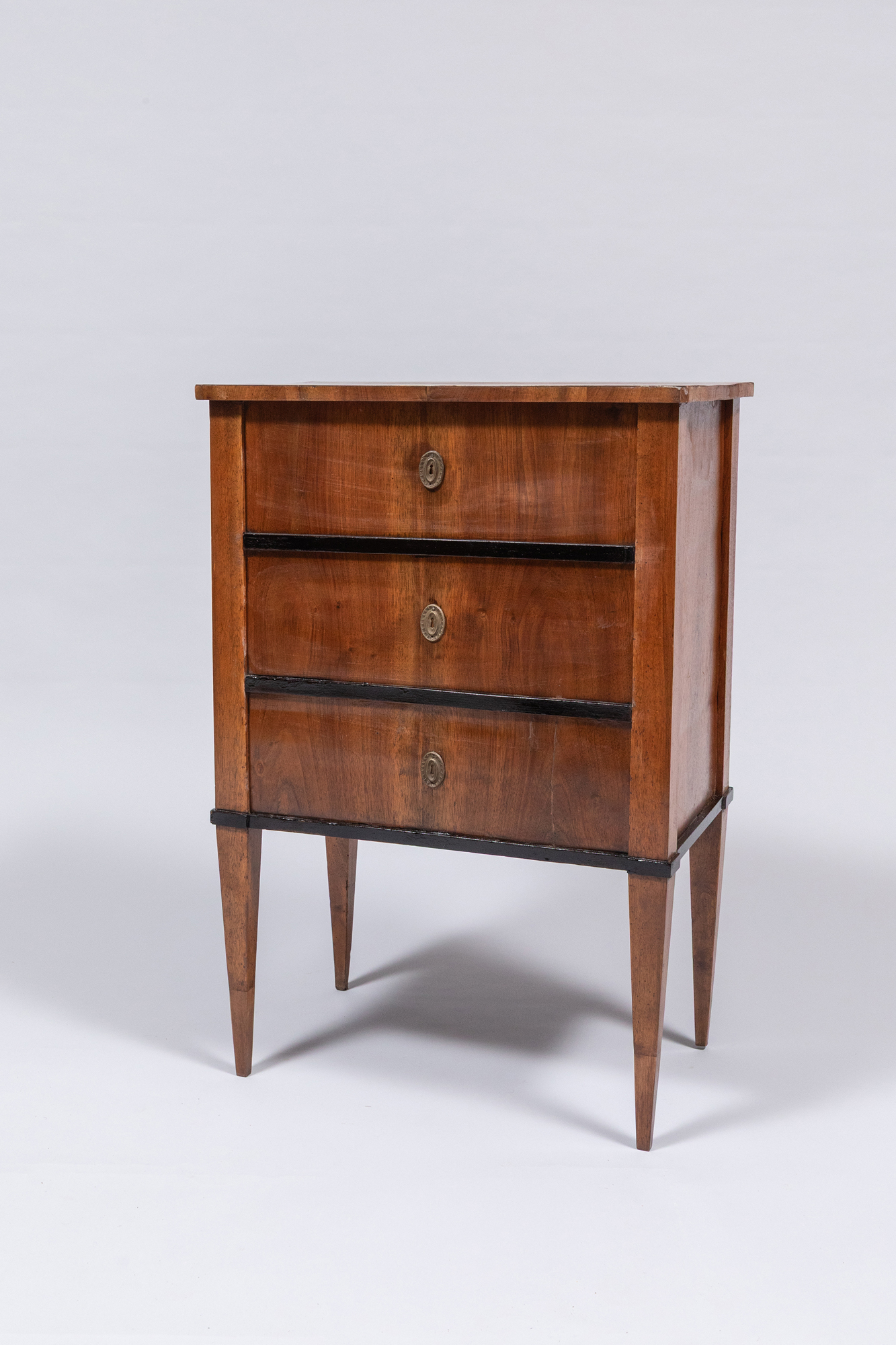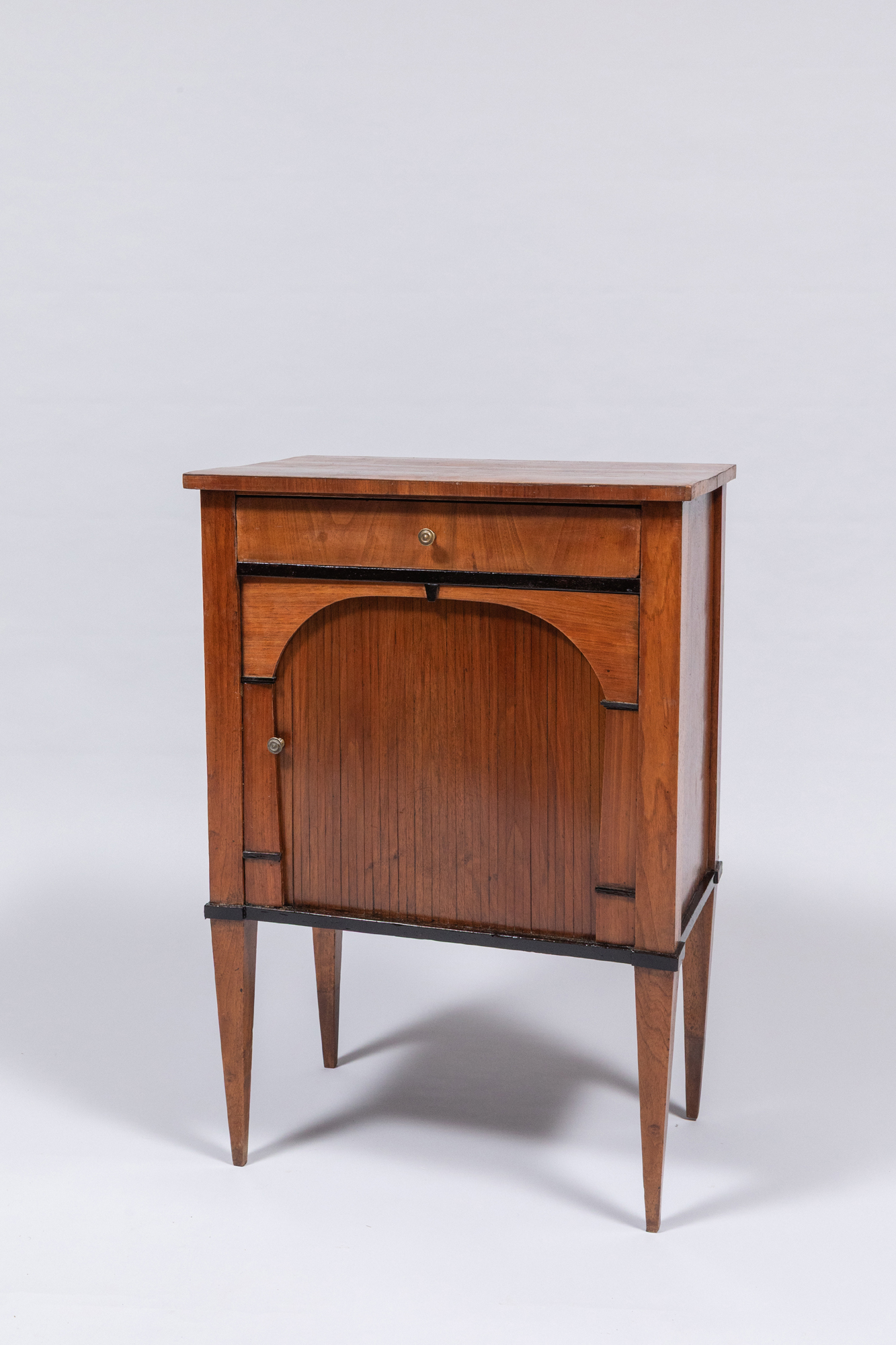 Allansichtig; auch die Beine Kirschholz furniert. Originaler Einlass- Schlüsselschild aus dunkel gefärbtem Holz.