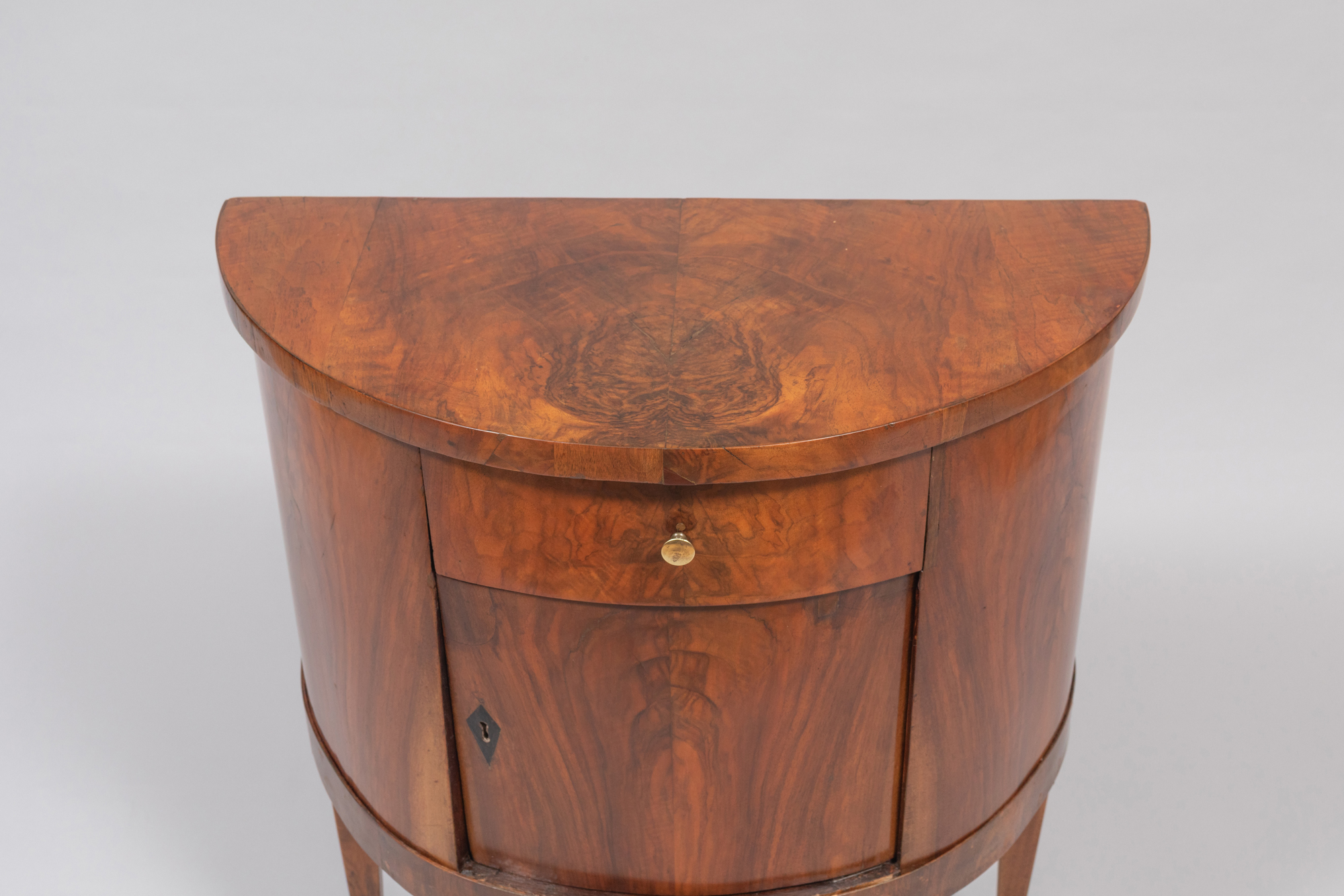 Tiefe: 36 cm. | Nr. 585 (b) - Zierlicher Demi- Lune- Halbschrank auf hohen, ausgestellten Beinen.