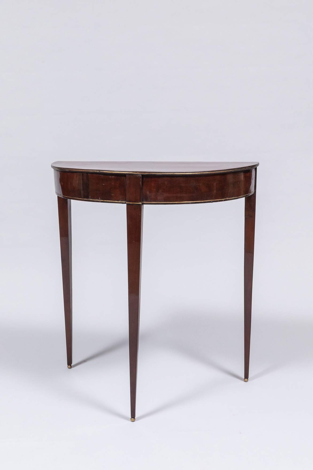 Durchmesser in aufgeklapptem Zustand: 88 cm | Nr. 1622 - Zierliche Demi- Lune- Konsole mit konischen Spitzbeinen.