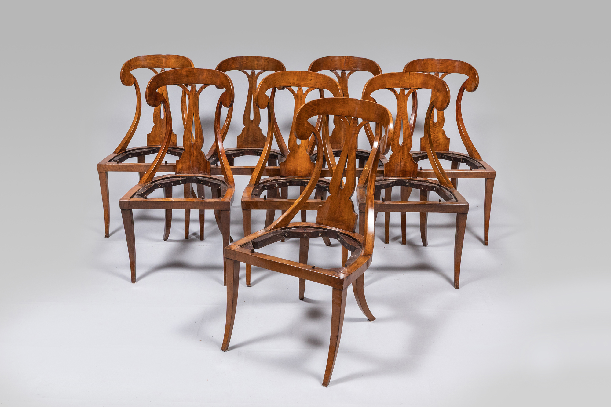 Sitzhöhe 43 cm. | Nr. 19023 (c) - Folge von acht hocheleganten Biedermeierstühlen.