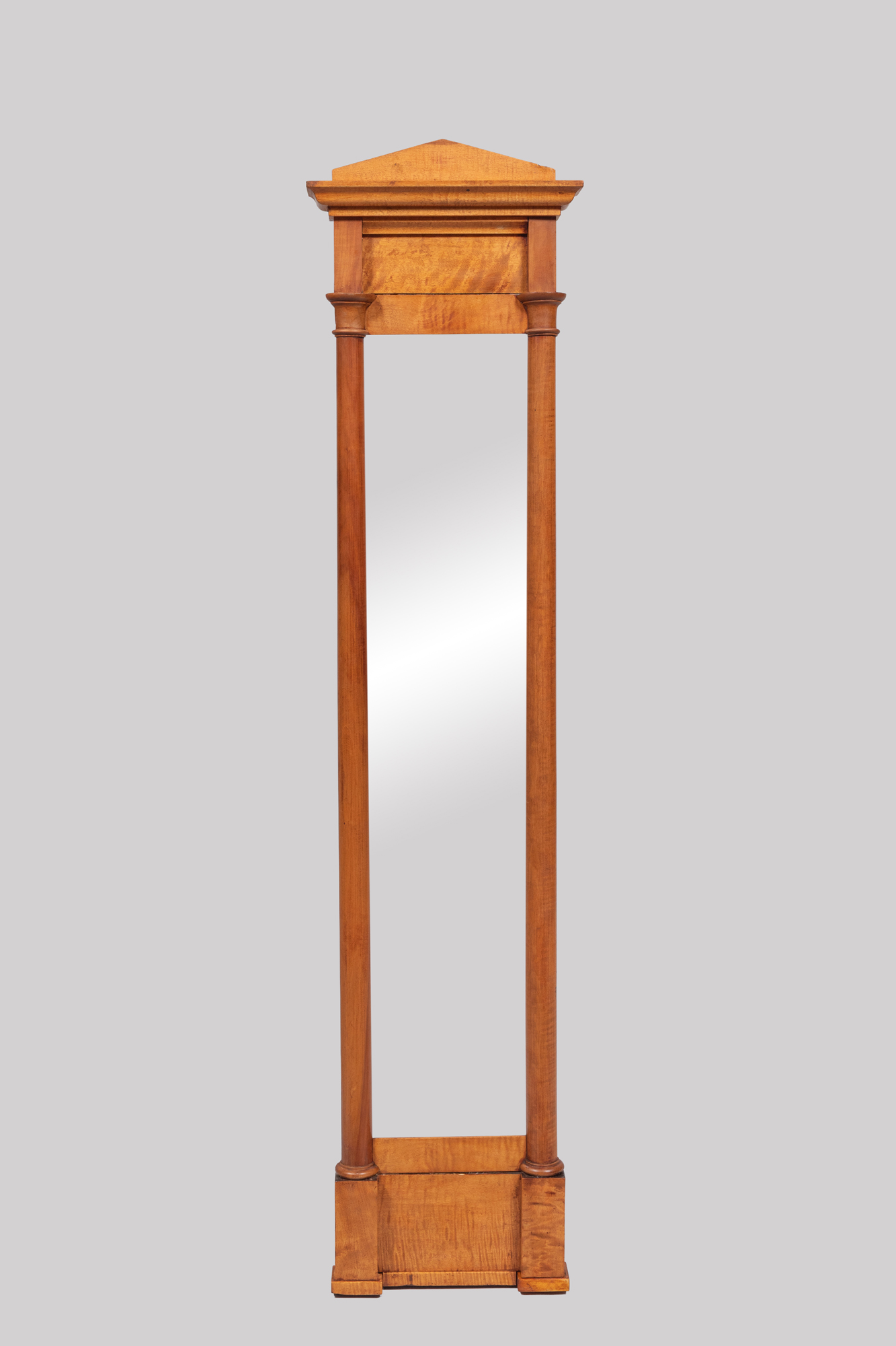 Nr. 250 - Außergewöhnlich schmaler Biedermeier- Pfeilerspiegel mit Dreiviertelsäulen.