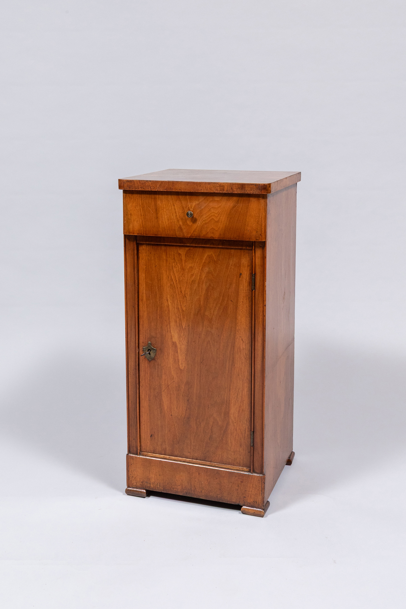 Preis: 2850 | Nr. 999 - Podestförmiges Biedermeier- Nachtschränkchen in konserviertem Originalzustand.